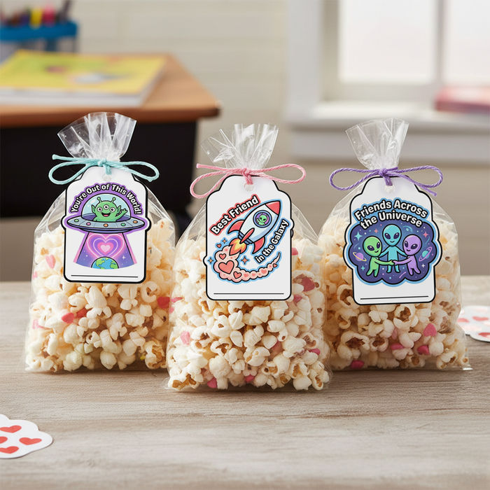 This playful space-themed printable set features 9 unique alien designs focused on friendship, making them ideal for school Valentine exchanges, classroom gifts, and non-romantic celebrations.